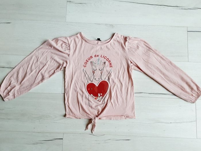 Vêtement fille tee-shirt manches longues Kiabi cœur de licorne rose 10 ans - photo numéro 1
