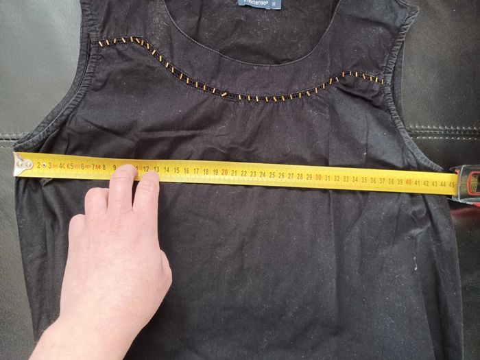 Robe légère sans manches avec perles dorées sur le devant. Ceinture à la taille. Taille 36 #noisette5457_vetementsfemmesS