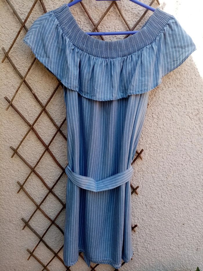 Robe épaules dénudées effet jean. Très agréable à porter et légère. Mesures en photos Taille 40 #noisette5457_vetementsfemmesL