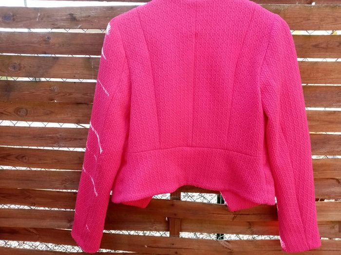 Blazer rose se ferme avec un petit crochet au devant. Petit défaut dans la doublure du au frottement (possibilité de refaire la couture si vous êtes douée 😉) Petites bouloches, un petit tour de rasoir et elle sera comme neuf. Taille 40 #noisette5457_vetementsfemmesL