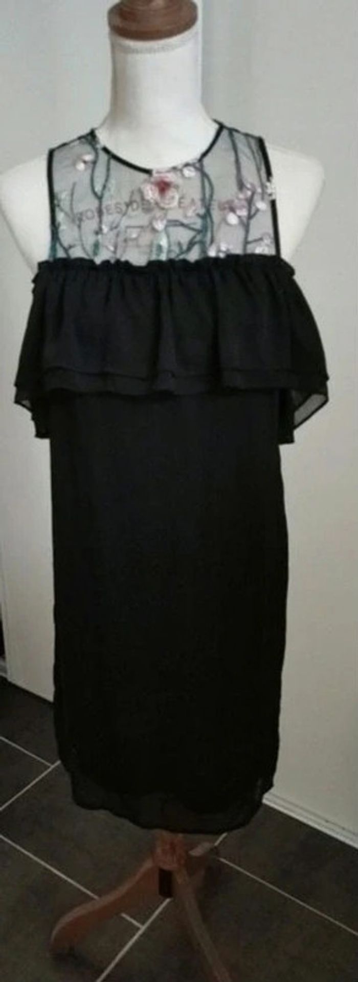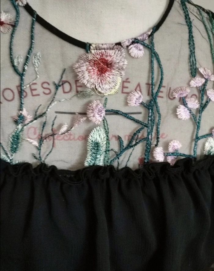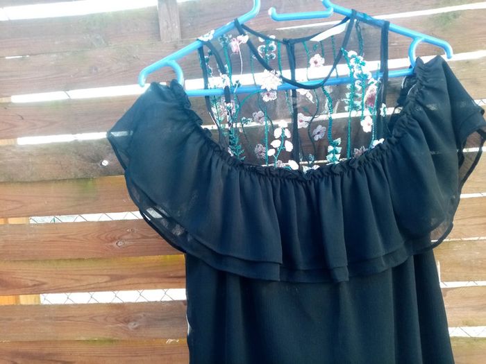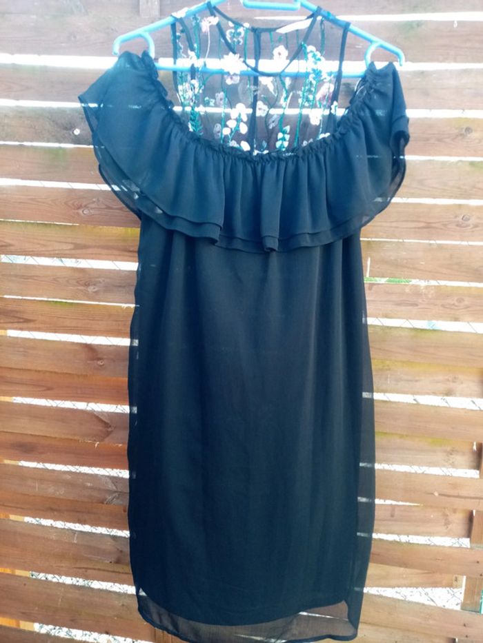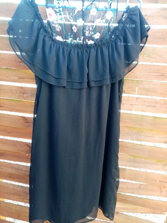 Robe à épaules dénudées avec broderie. Longueur genoux (pour 1m60) et doublé Convient à un 38/40, l'étiquette de taille a été coupé. #noisette5457_vetementsfemmesM