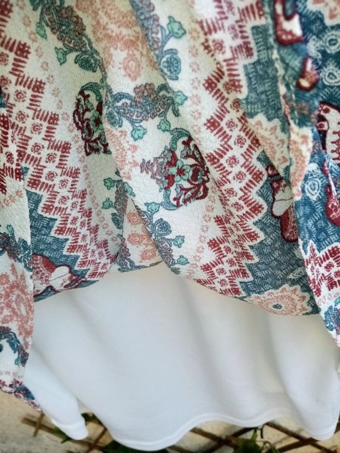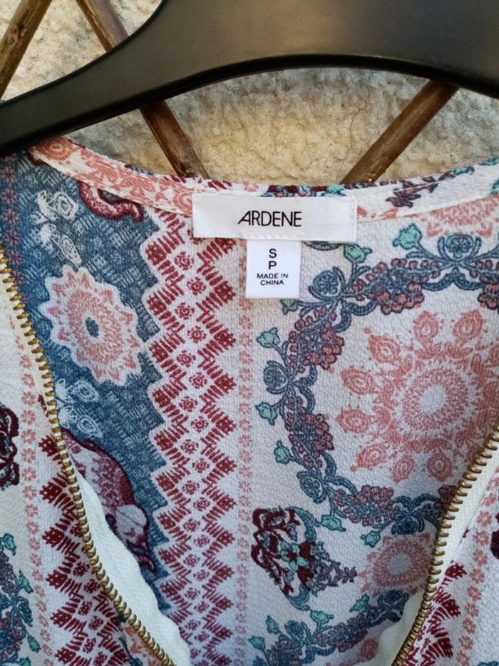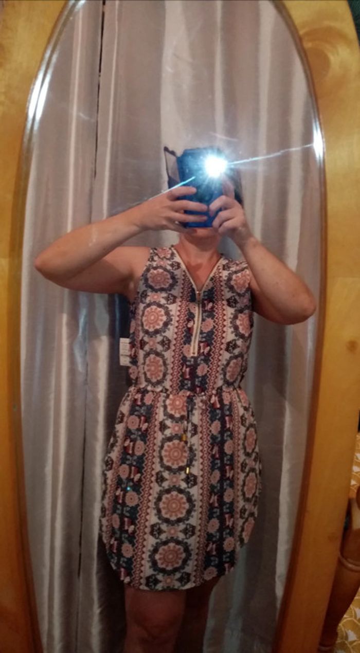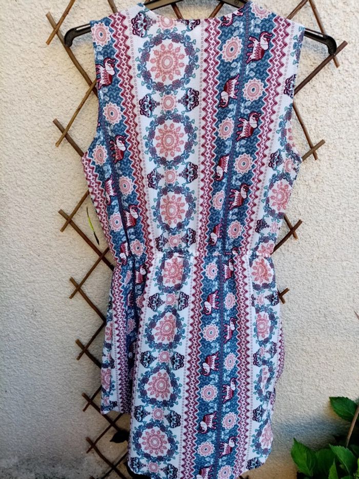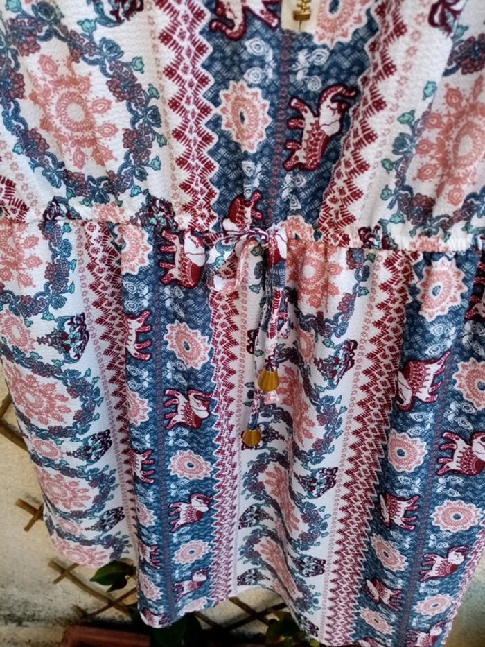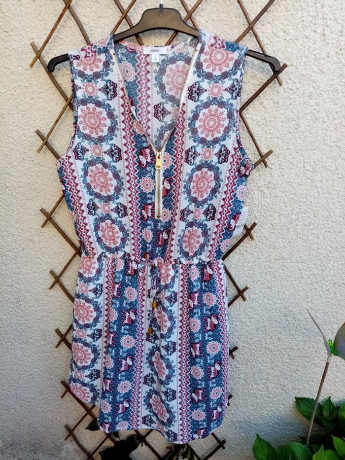 Robe neuf à motifs avec une fermeture réglable sur le devant.