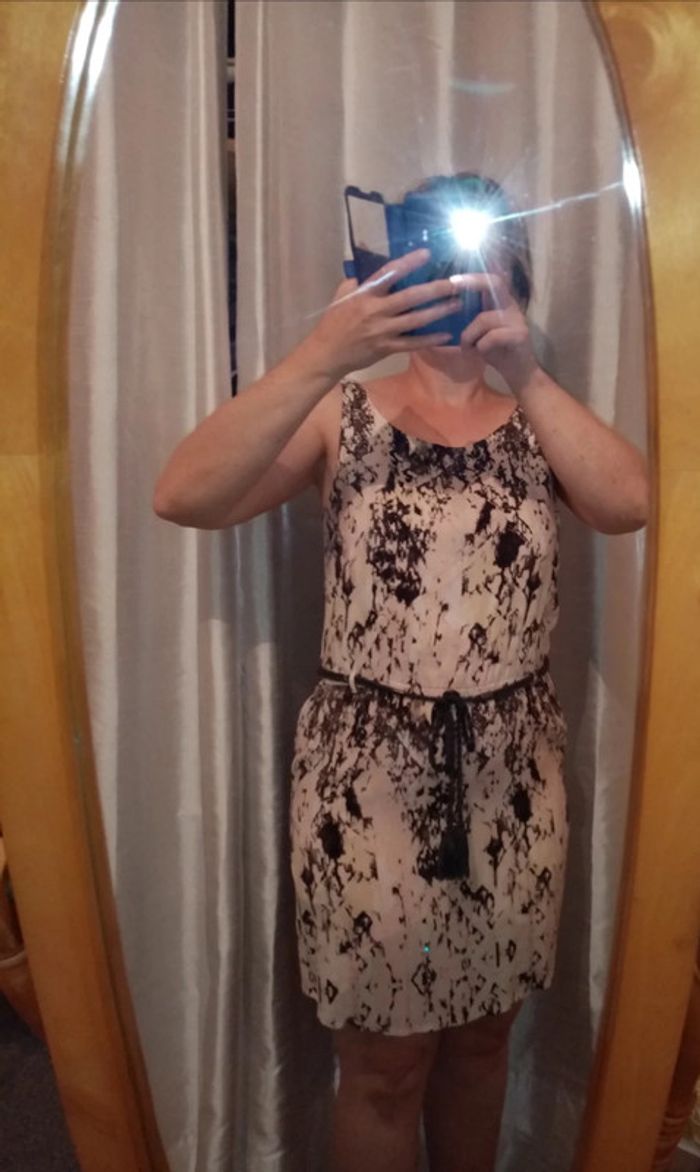 Robe légère sans manches. Petit élastique à la taille avec une ceinture tressé en corde. Poches sur les côtés très discret. Elle fait habillé et chic 😉 📦4 Taille 38 #noisette5457_vetementsfemmesM Si vous avez des questions n'hésitez pas