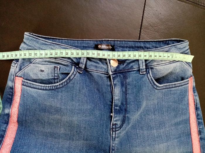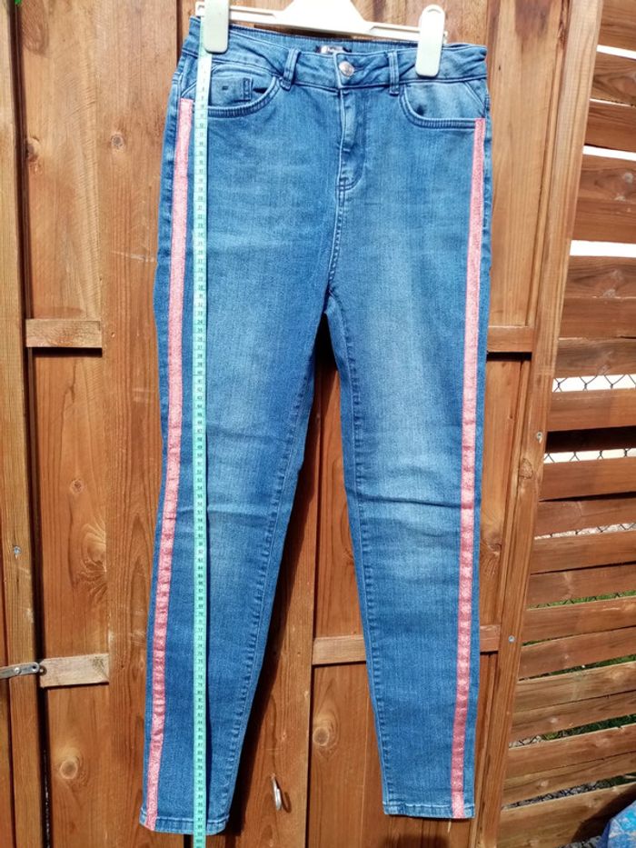 Jean bandes brillantes sur les côtés. Taille 38 Mesures en photos Très peu porté. #noisette5457_vetementsfemmesM Si vous avez des questions n'hésitez pas