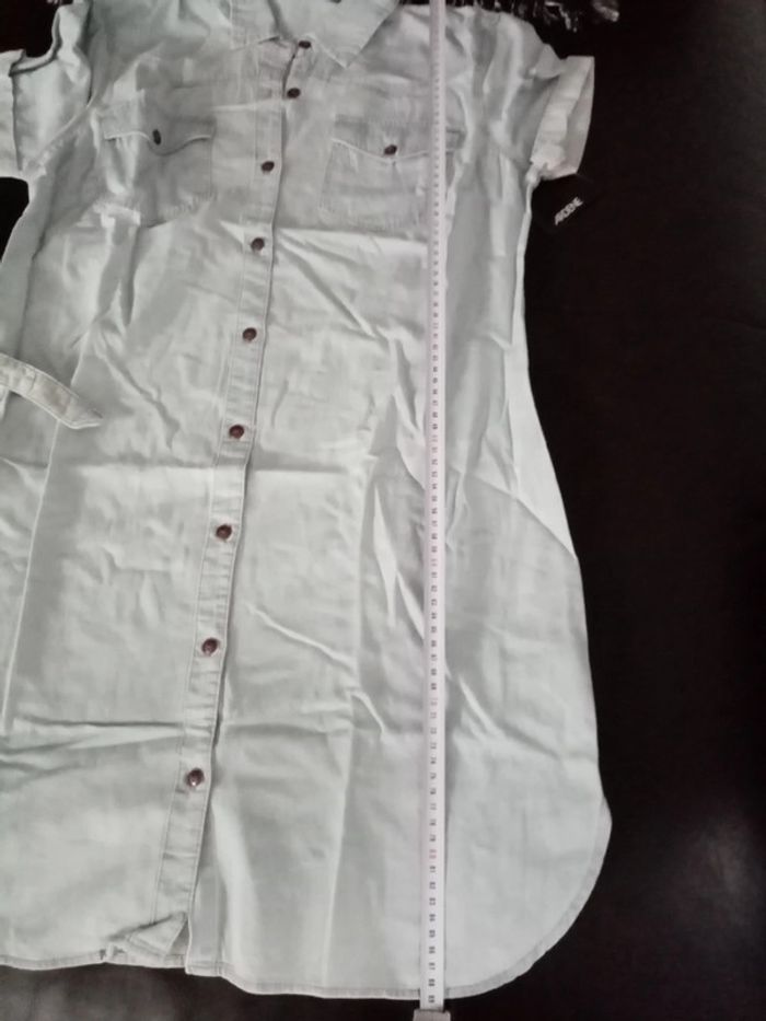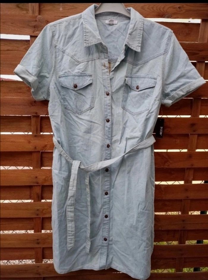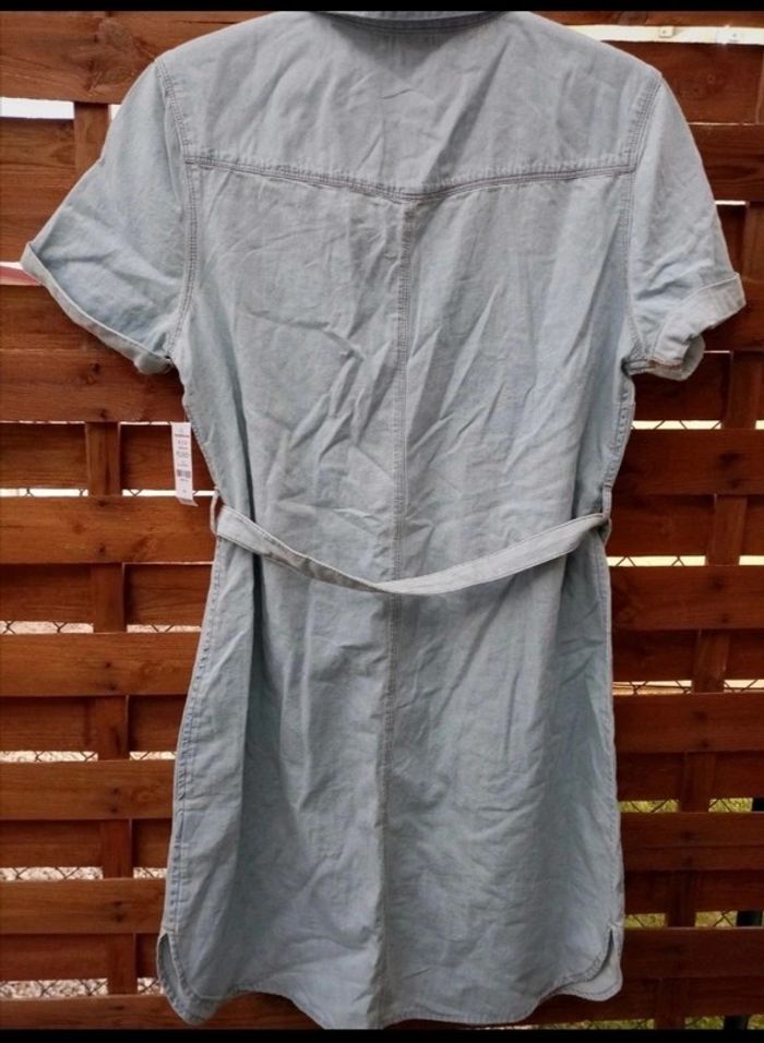 Robe effet jean à manches courtes Neuf, avec 2 poches plaquées sur le devant. Boutonnage sur le devant avec sa ceinture. Très légère 📦6 #noisette5457_vetementsfemmesL 💭Si vous avez des questions n'hésitez pas 🙂