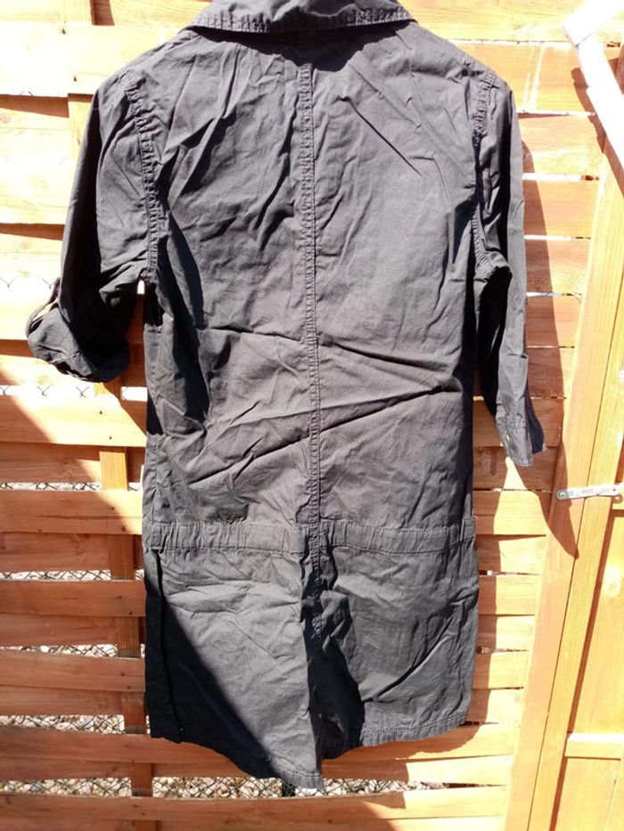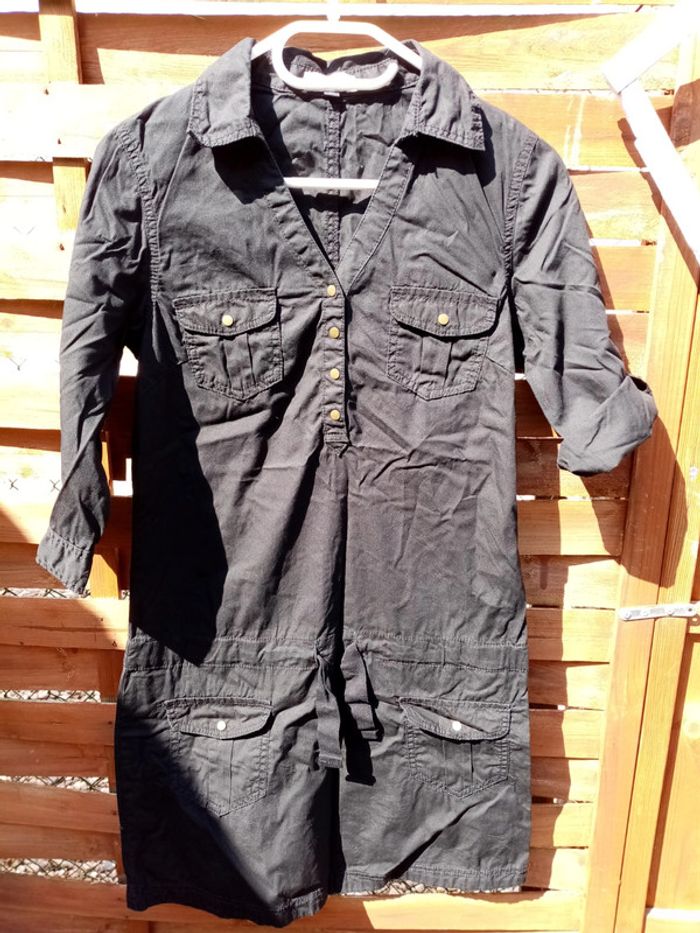 Robe manches réglable. Fermeture sur le côté et devant par bouton à pression. Poches et un lien sur le devant. Longueur robe en partant de sous l'aisselle ⚠️Voir photo pour le col (c'est le thermocollant) mais ne gêne en rien. 📦2 #noisette5457_vetementsfemmesS Si vous avez des questions n'hésitez pas