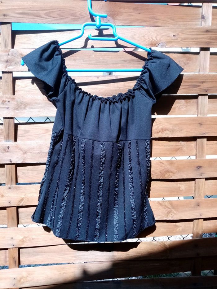 Haut noir avec petit liseré brillant. Possibilité de faire des épaules dénudées ou non, il fait habillé et festif. (Plus d'étiquette convient 36/38) 📦2 #noisette5457_vetementsfemmesS Si vous avez des questions n'hésitez pas
