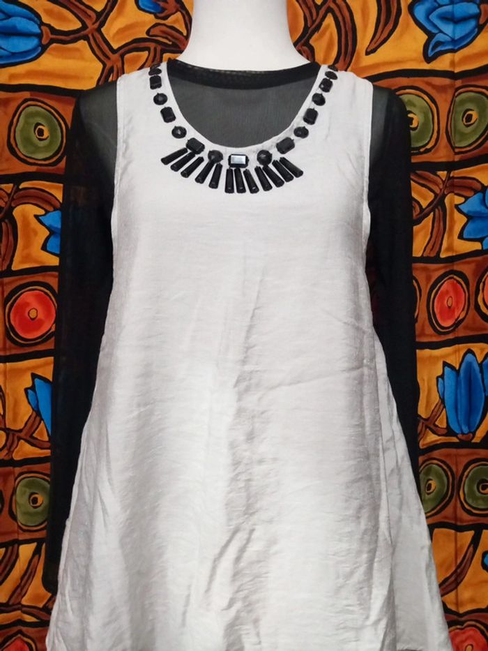 Longueurs 80cm doublé non transparent, Largeurs du decolte aisselles à aisselles 1M Pochés de chaque côté Taille unique convient 36-38 bijoux intégré au niveaux du col