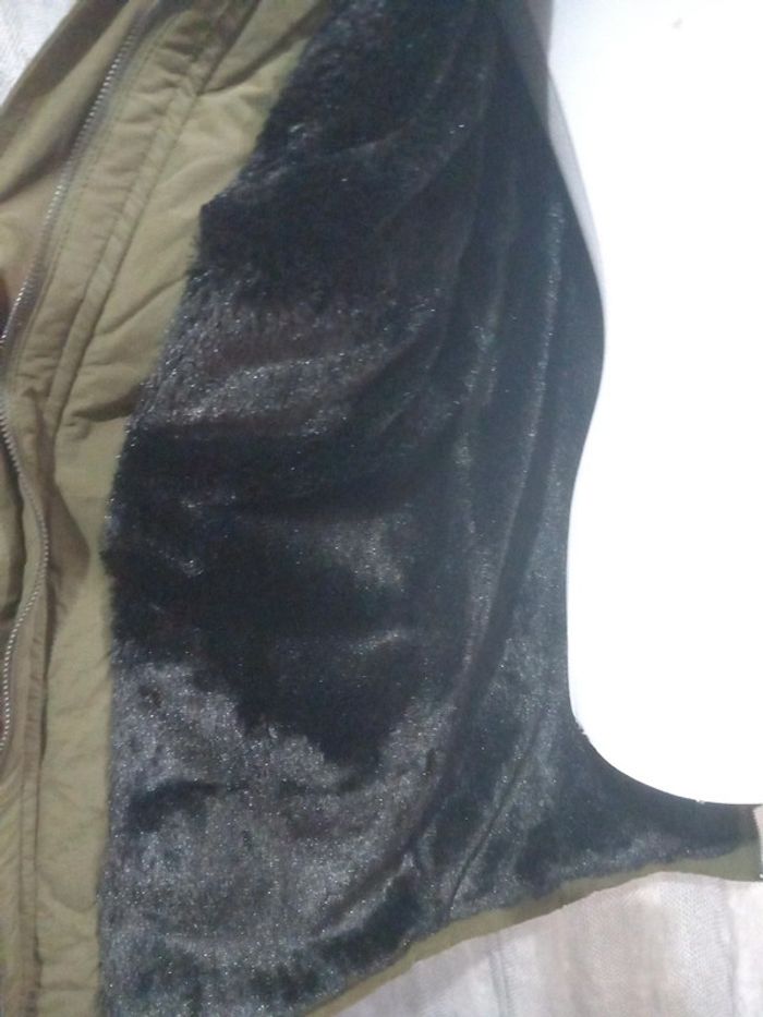 Doublure chaude doublé système des fermeture éclair et pression Capuche movibles en deux parties Capuche simple au avec les poils Pochés de chaque côté longueurs 80cm