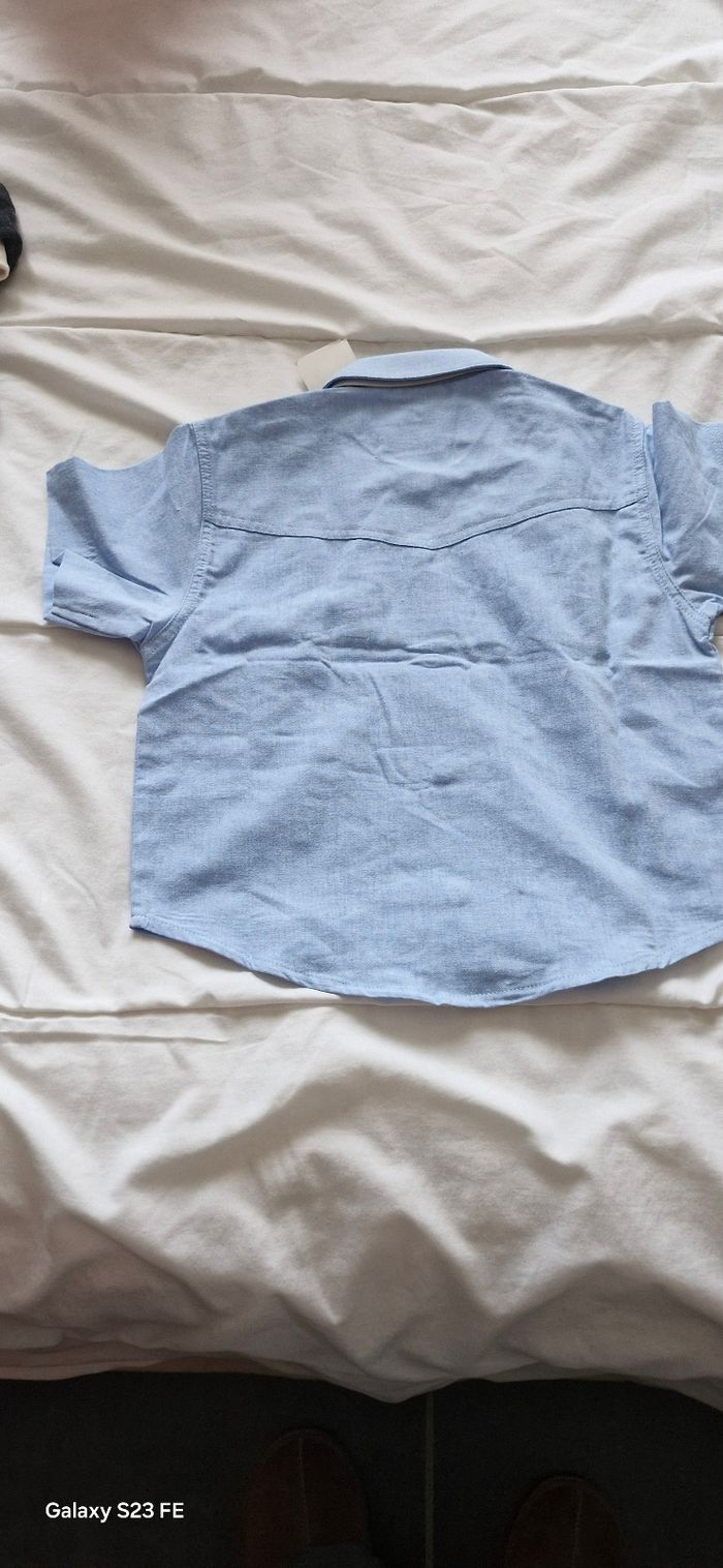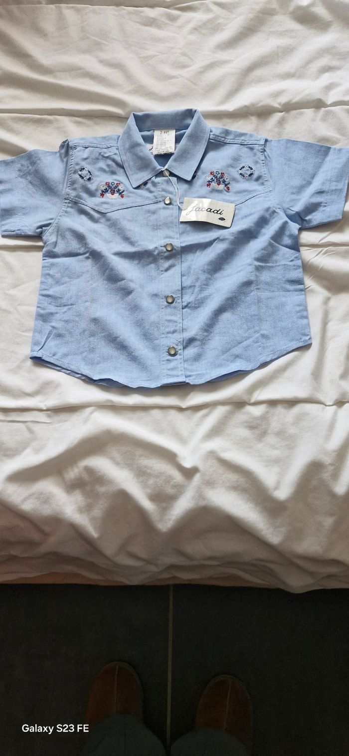 Chemise bleue filoutage chambray Jacadi, manches courtes boutons pression neuve avec étiquettes.