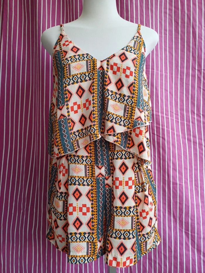 A doublé volants en cache cœur,jolies dos Fermeture éclair de côté, fines brides réglable Shorts Plissé sue le devant Longueur 85cm Largeurs 90cm
