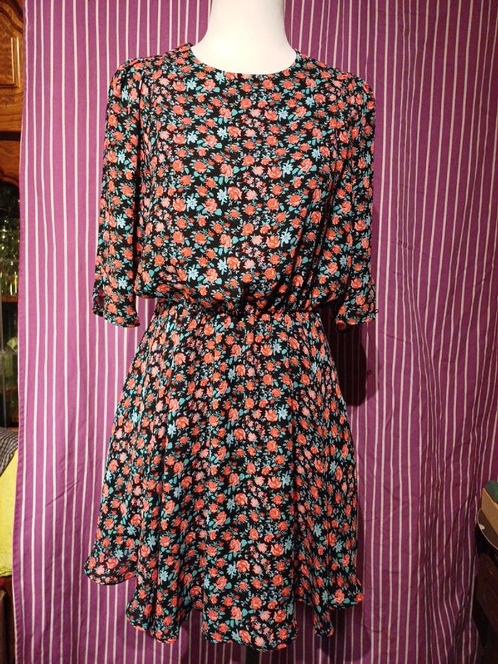 Jupe évasée manches péplum 3/4 avec doublure tour de poitrine 108cm Longueurs 87cm