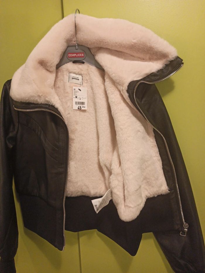 Veste noire similicuir doublure polaire - photo numéro 4