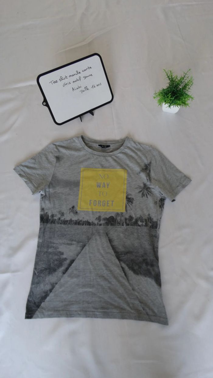 Tee shirt manche courte gris Motif jaune KIABI