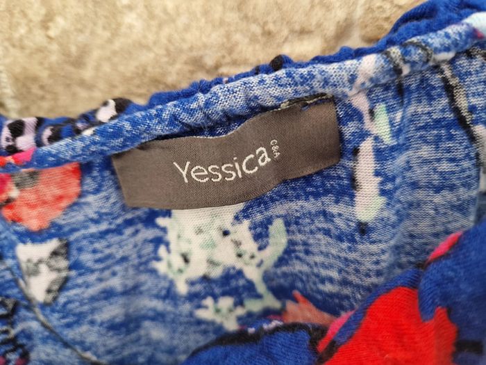 1 t-shirt bleu motifs fleurs  à bretelle taille L marque Yessica - photo numéro 7