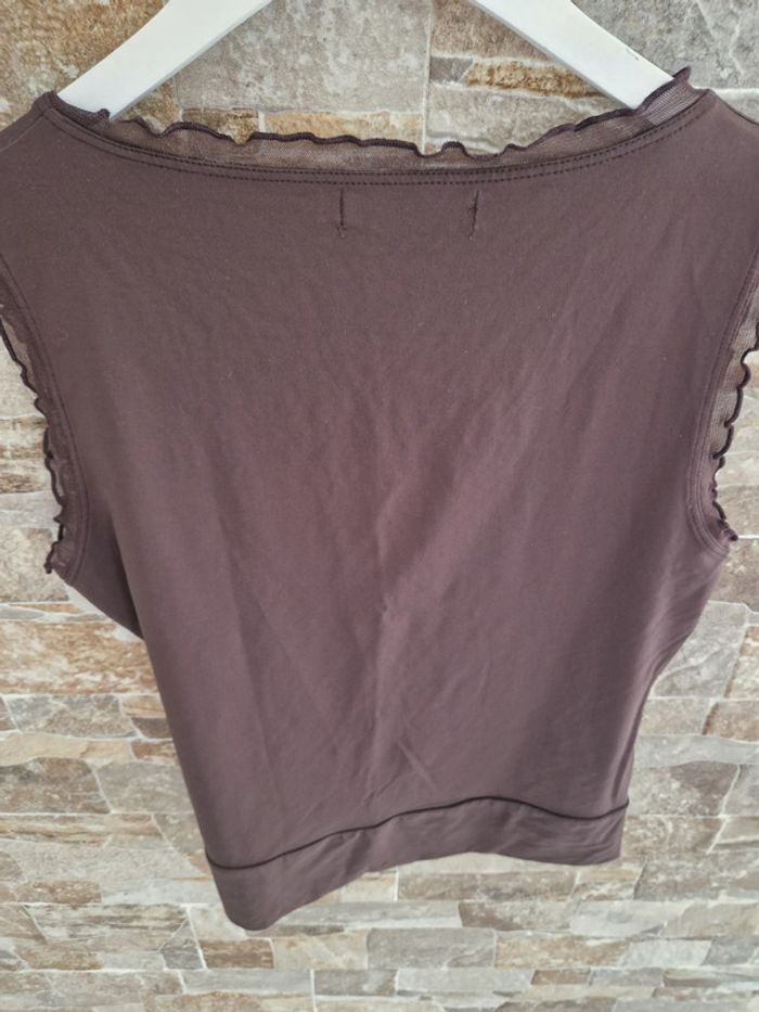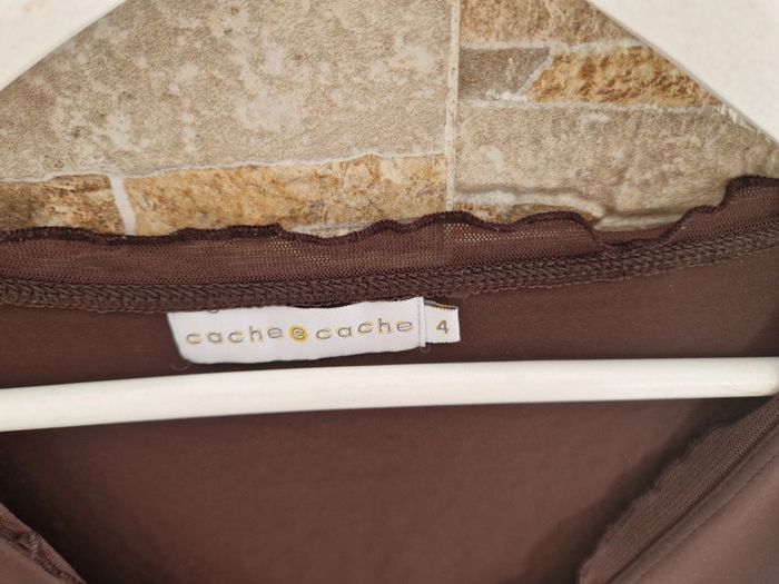 1 t-shirt marron sans manche avec dentelles vers les manches taille 4 marque cache cache - photo numéro 4