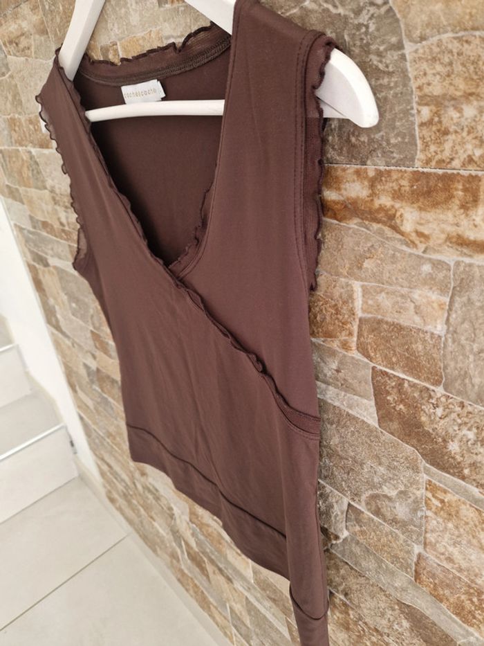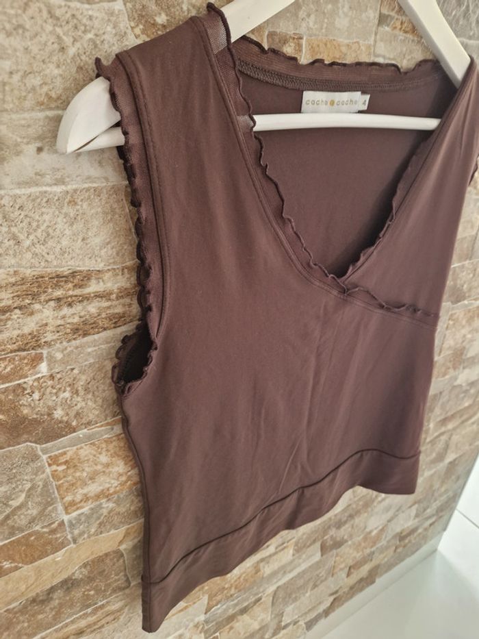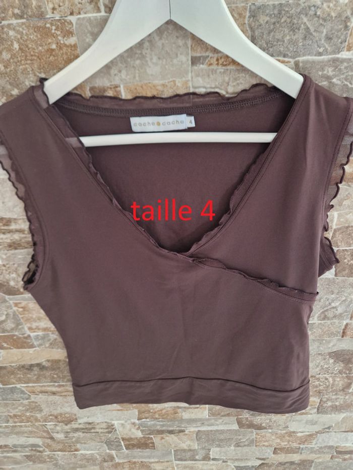 1 t-shirt marron sans manche avec dentelles vers les manches taille 4 marque cache cache #laetie69_femmesTAILLE46 #laetie69_femmesTAILLE44