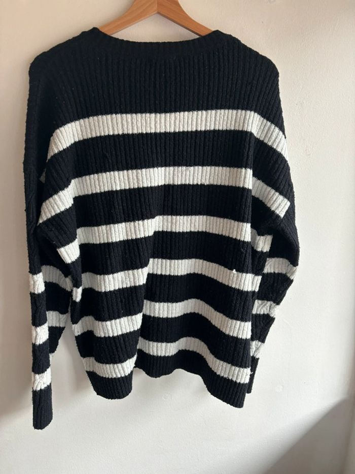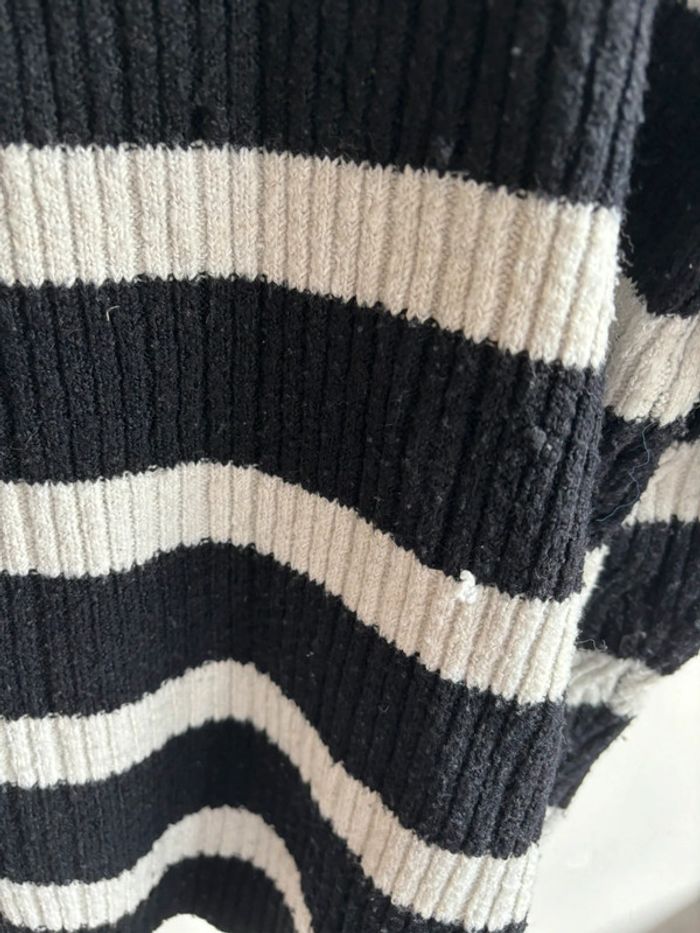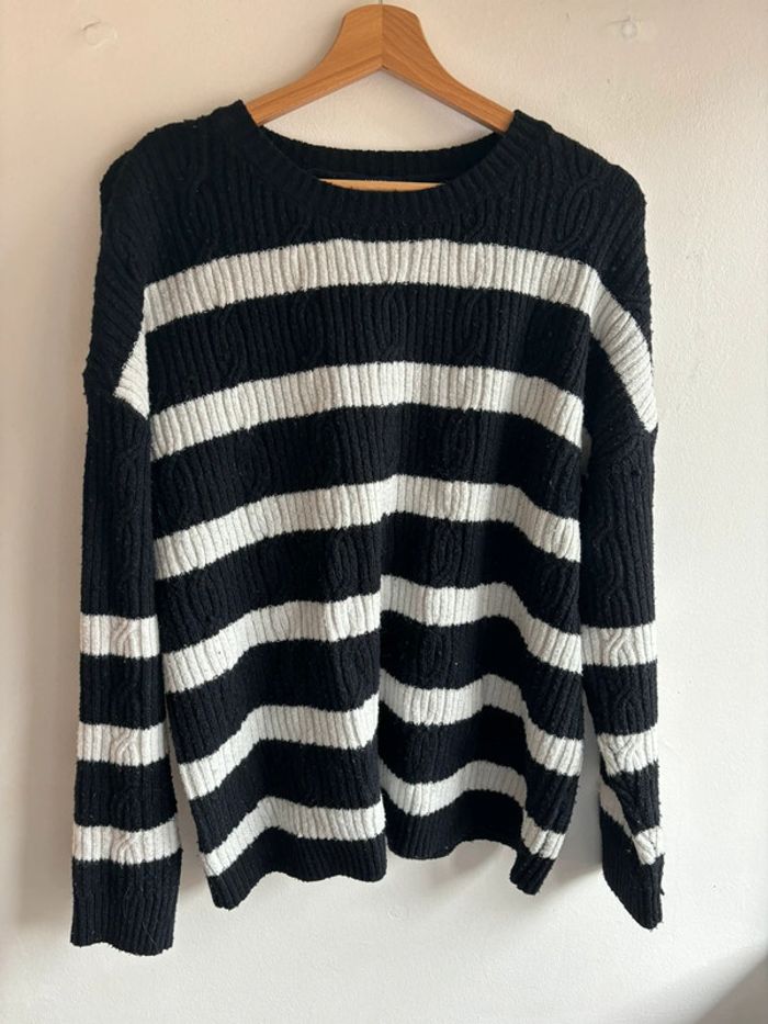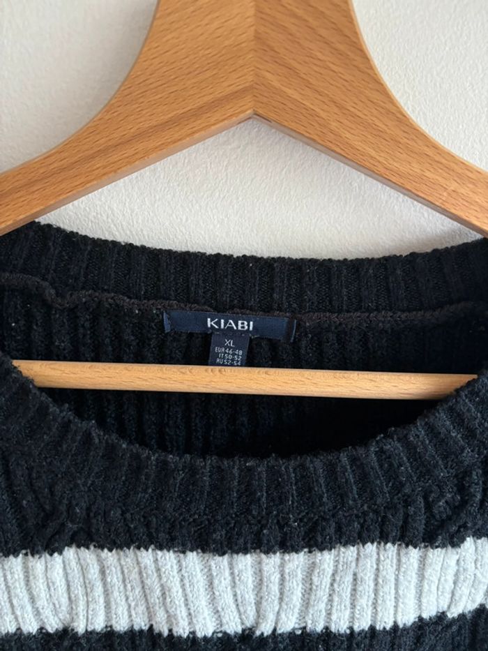 Pull noir et blanc kiabi en taille XL. En bon état malgré un accro qu’on peut voir sur la photo.
