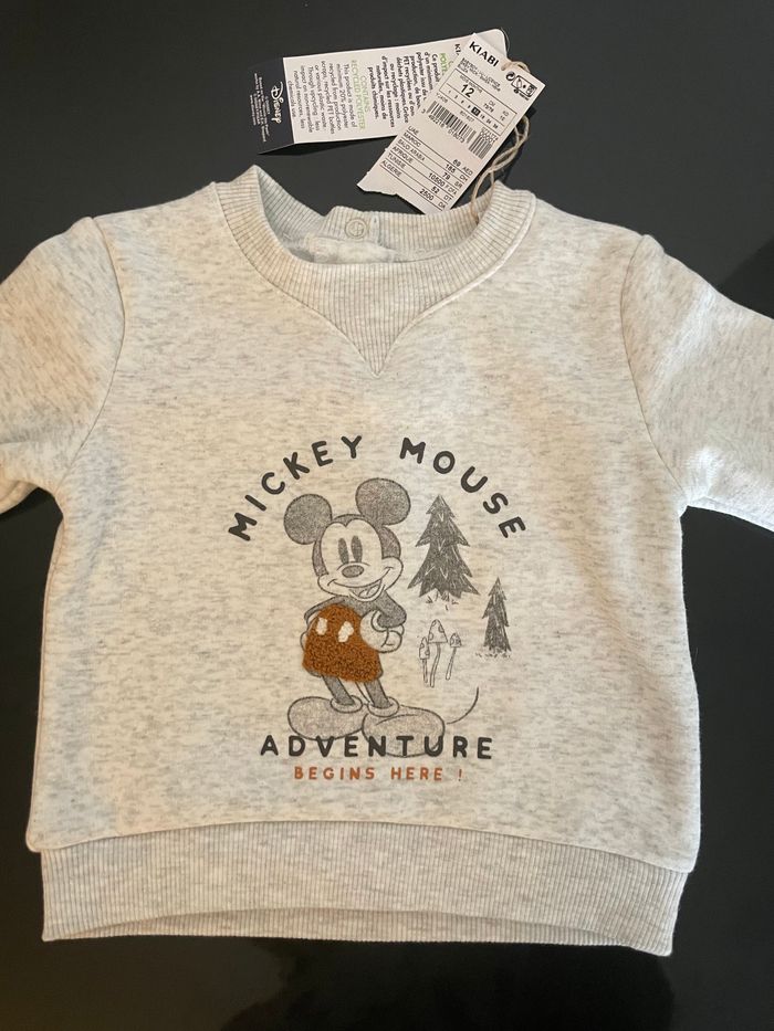 Bonjour, je vends un pull gris de chez Disney Mickey neuf avec étiquette. taille 12mois