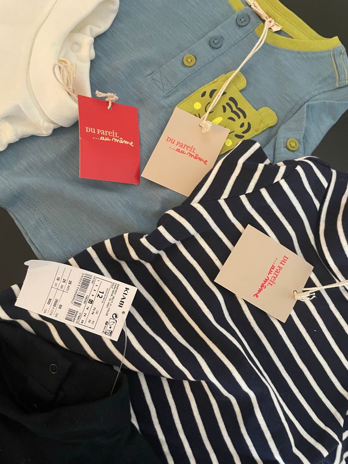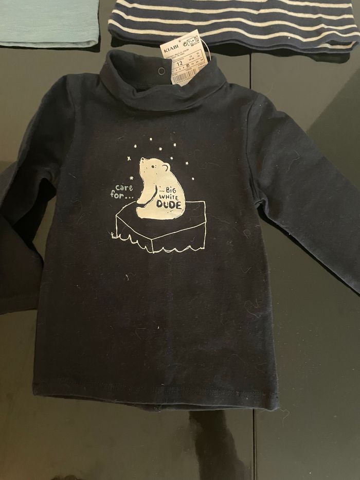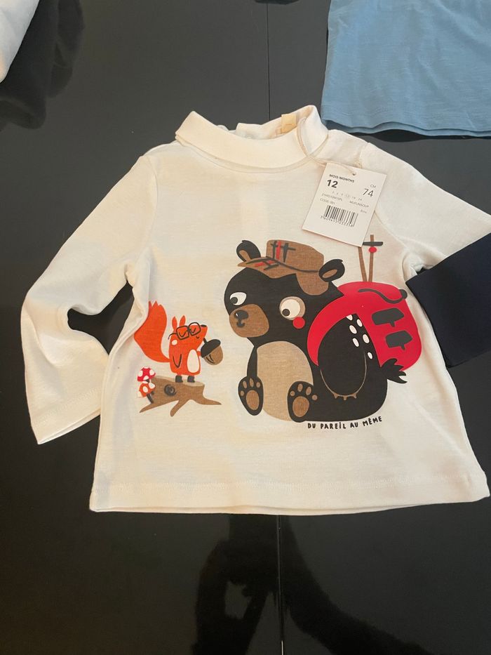 je vends un lot de 4 t-shirts à manches longues/ col roulé. taille 12mois. 3 de chez du pareil au même et 1 de chez kiabi tous sont neuf avec étiquettes.