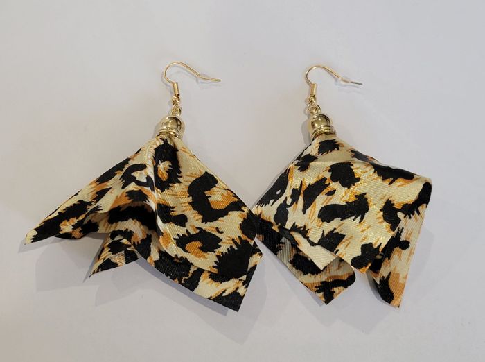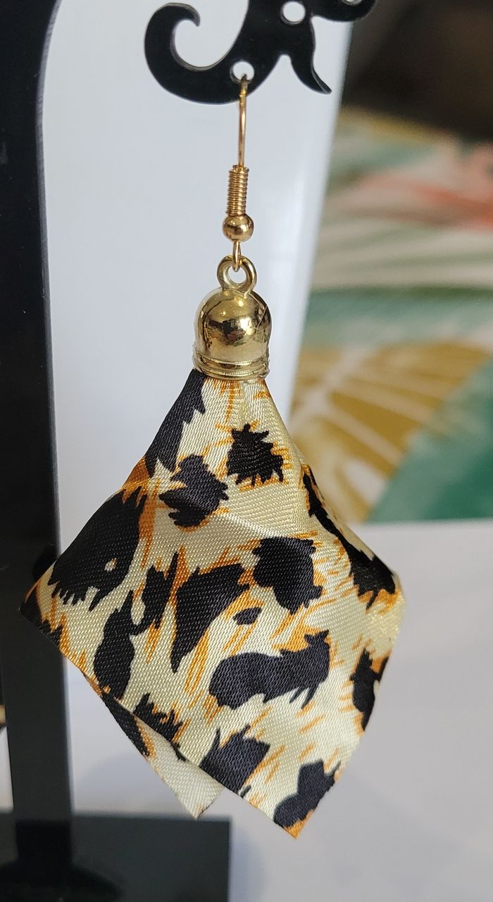 BOUCLES D'OREILLES IMPRIME TISSU LEOPARD ! NEUF ! - photo numéro 4