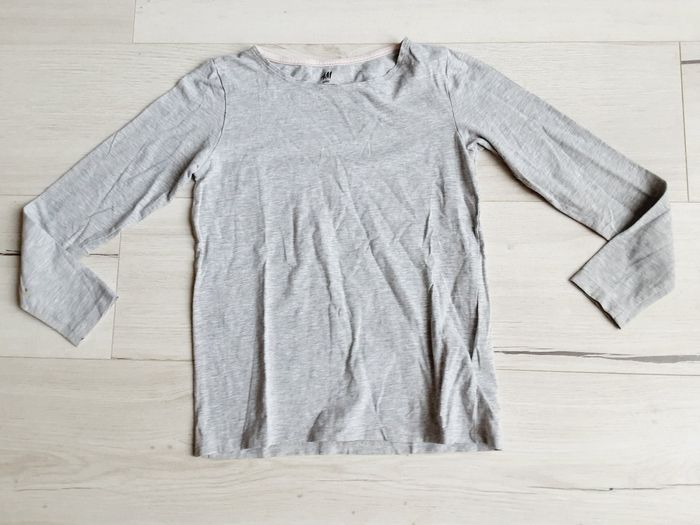 Vêtement fille tee-shirt manches longues gris uni H&M 10 ans - photo numéro 1
