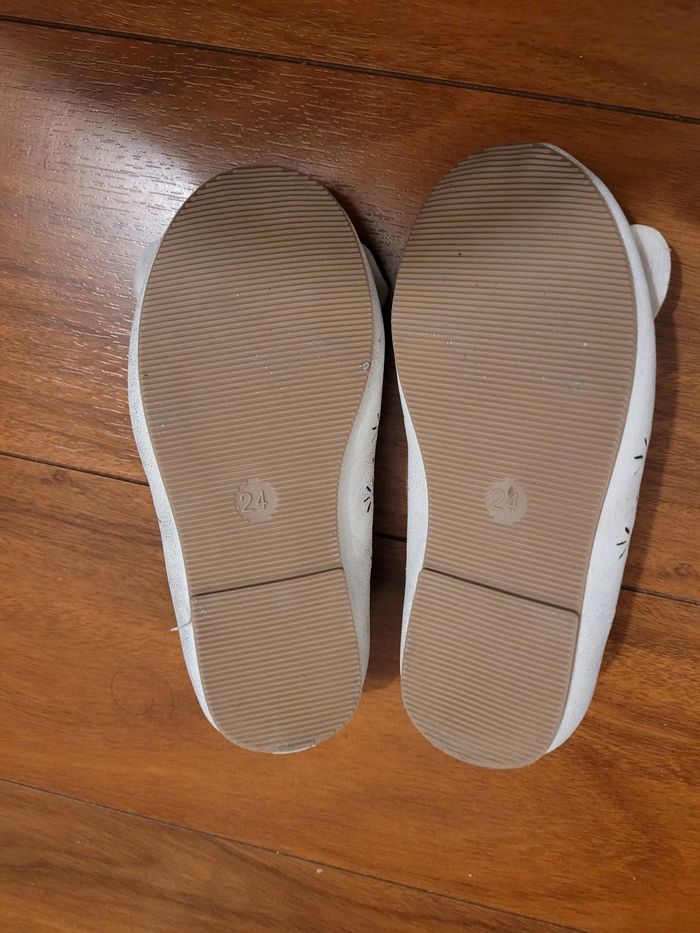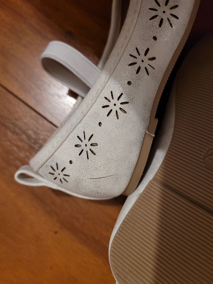 Ballerines elegantes blanches / argentés Comme neuves sauf pour une petite coupure superficielle visible photo 3 Taille 24