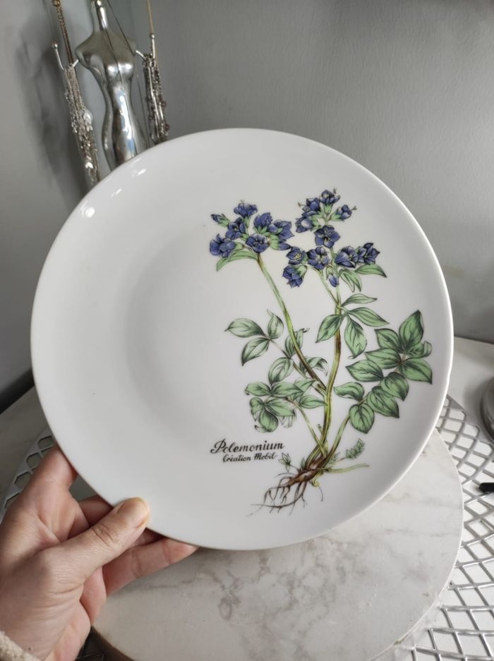 Assiette de collection des années 1950 en véritable porcelaine fine de Bavière. Marque WINTERLING ROSLAU avec écusson, estampillée MOBIL. Motif polémonium. En très bon état vu son âge. Diamètre: 24cm. ❌️ ke poids peut être modifier avant achat