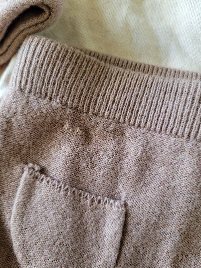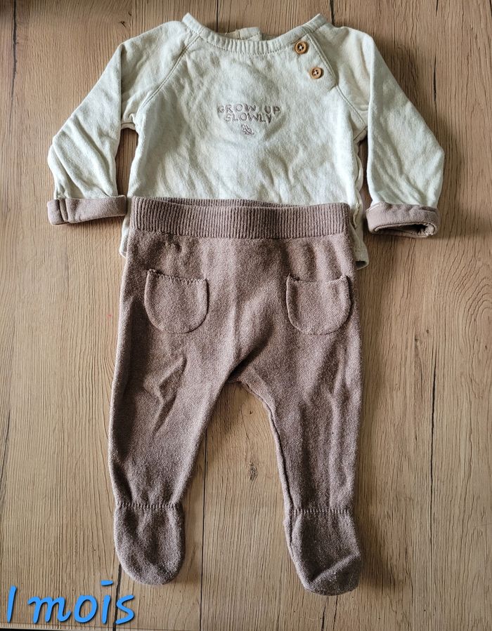 Joli ensemble pantalon + maillot, beige et marron. Peu porté. Un petit trou a été recousu (Voir la 2eme photo)