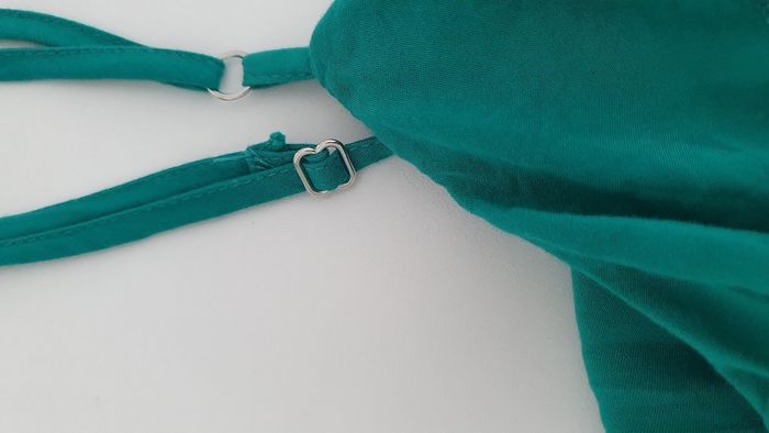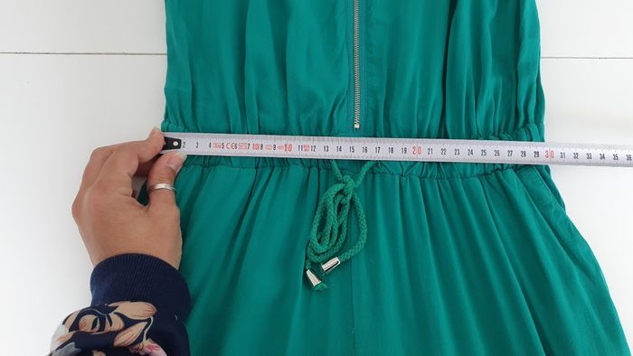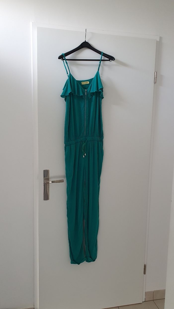 Combinaison verte Cache Cache en S Bretelle ajustable Possibilité de serrer ma taille Froufrou au niveau du decolleté La fermeture éclair s'ouvre