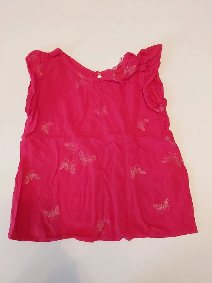 T shirt rose foncé motifs papillons dorés Matière légère Bouton dans le dos au niveau du cou #alinelagut4ans