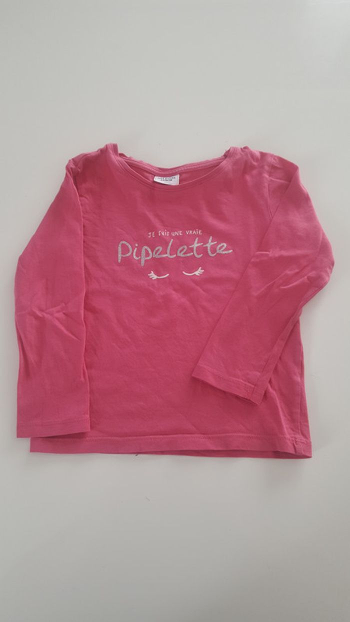 T shirt manches longues rose "je suis une vraie pipelette" taille 3 ans / 96 cm Tape à l'oeil
