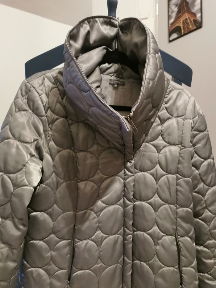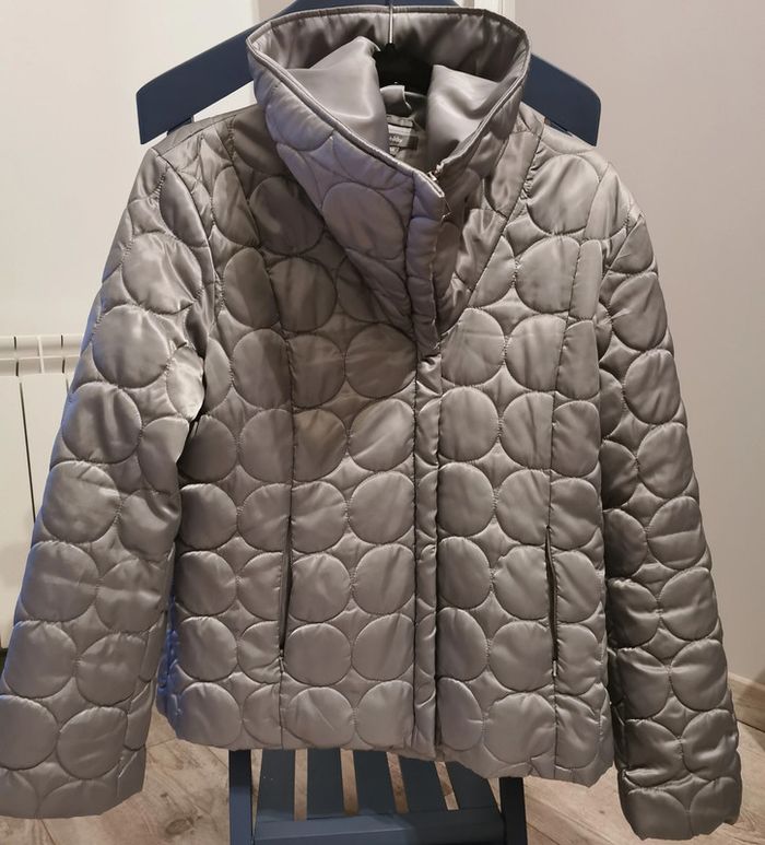 Veste grise matelassée Phildar taille 44. Idéale pour la demie saison. Fermeture éclair. En parfait état. D'autres vêtements sont en vente dans mon dressing, réduction automatique de 10 à 20% sur les lots à partir de 2 articles achetés.