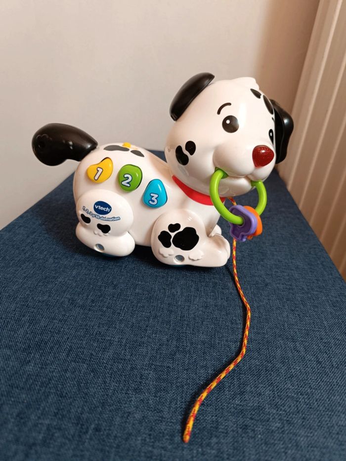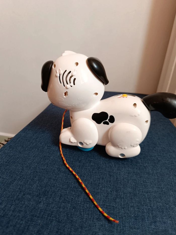 Jeu enfant chien a tirer fonctionne parfaitement ma fille n'a jamais trop porté attention a ce jeu donc en très bon état