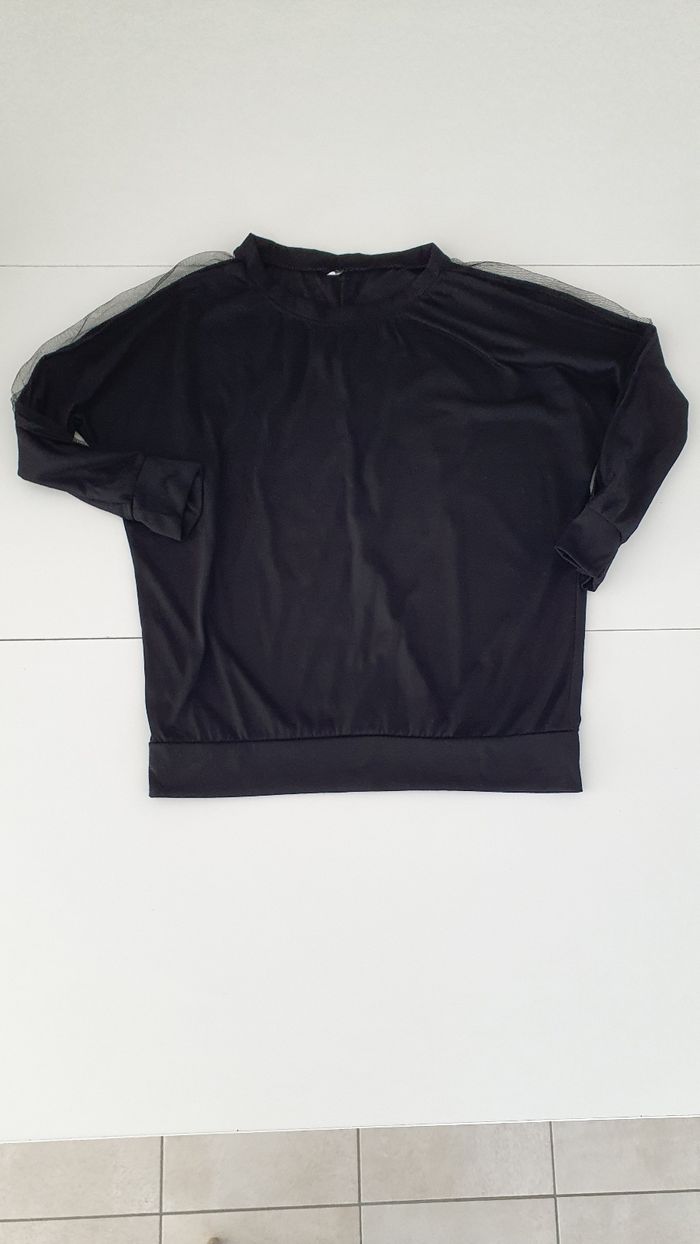T shirt neuf noir avec resille en S - photo numéro 1