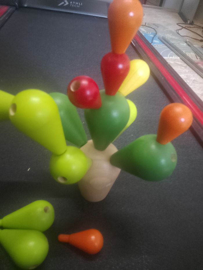 Vends en très bon état ce jeu d'adresse. Vendu avec un tronc ( nature & découverte inscrit dessus) et 17 tiges colorés. Le tout en bois.