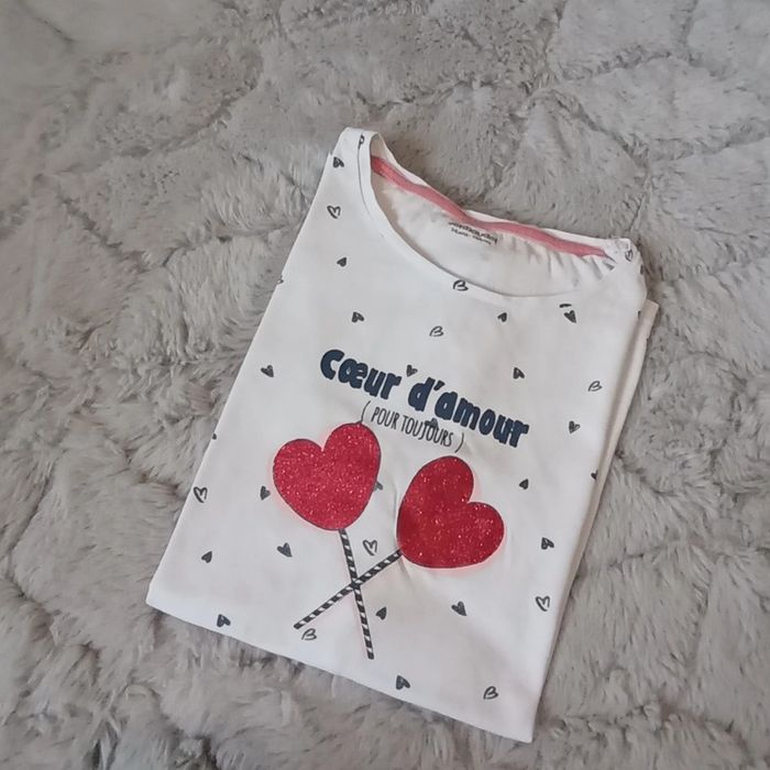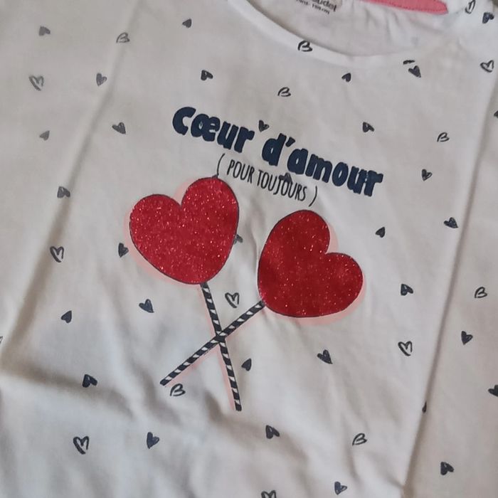 🌹 14 ans 🌹 Verbaudet 🌹 T-shirt blanc imprimé petits coeurs, ❤️ pailleté rouge, bas a nouer 🌹 Printemps été #doudou19230_14ansfille