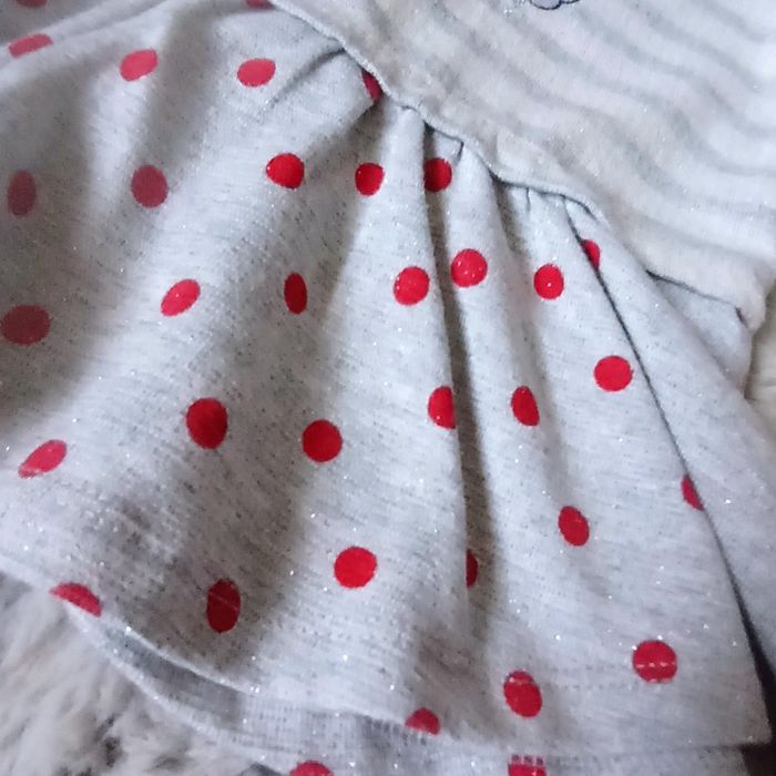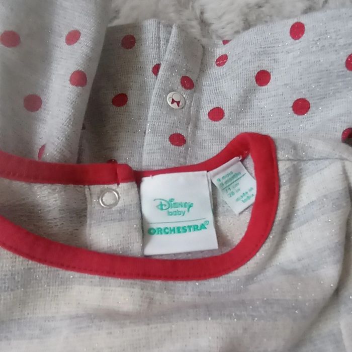 🌹9 mois 🌹 Orchestra 🌹 Disney Minnie 🌹 Petite robe grise a rayures pailletées , bas avec points rouges, fermeture au dos par des boutons pressions décoré du nœud 🎀 de Minnie 🌹 Printemps été #doudou19230_9moisfille