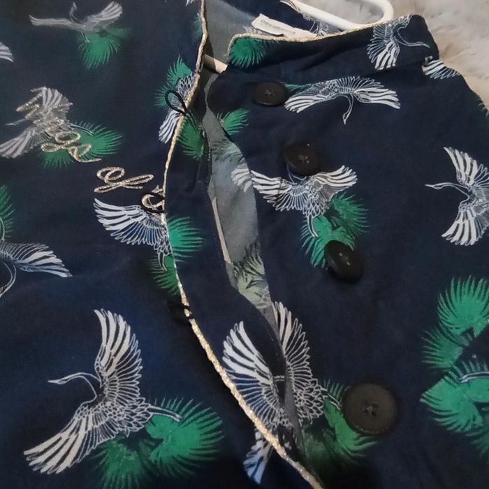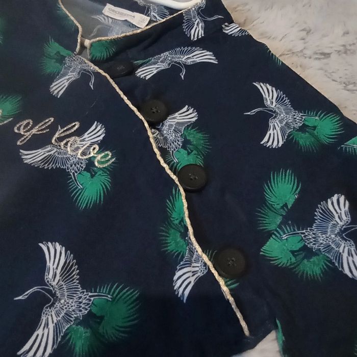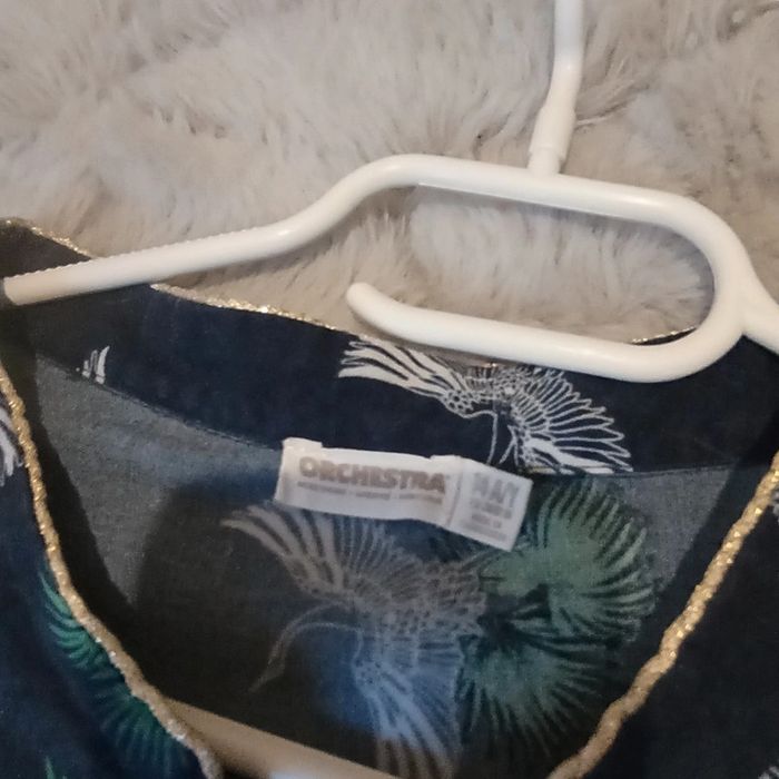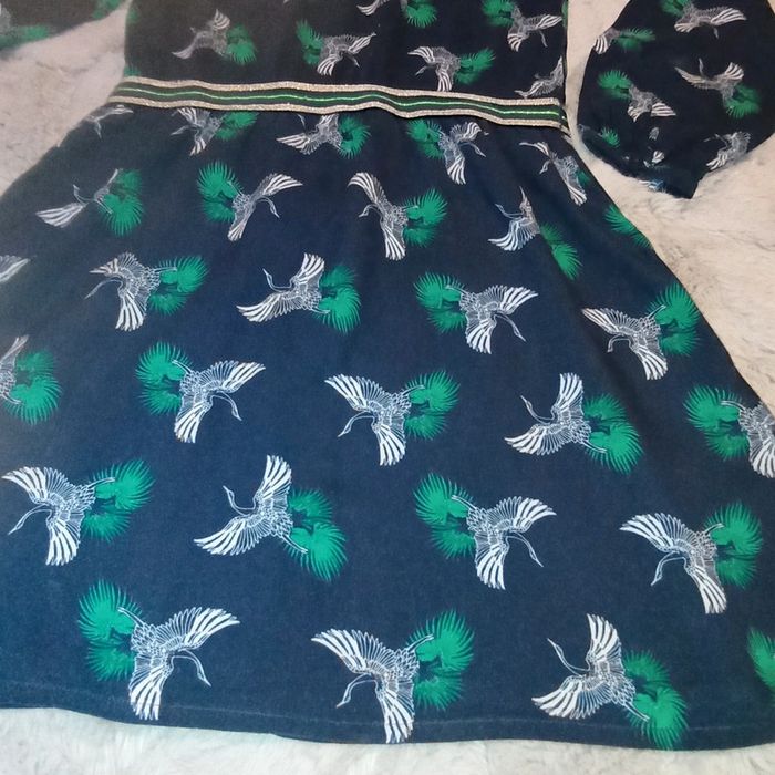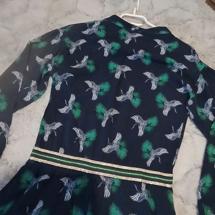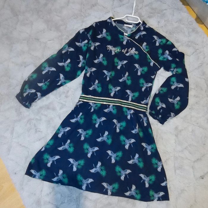 🌹14 ans 🌹 Orchestra 🌹Belle robe bleu marine imprimé oiseaux blanc , fermeture sur le devant par des gros gros boutons, élastique large pailleté a la taille, inscription en doré, petit liseré doré au niveau du col, bas des manches elastiquées 🌹Mi saison #doudou19230_14ansfille