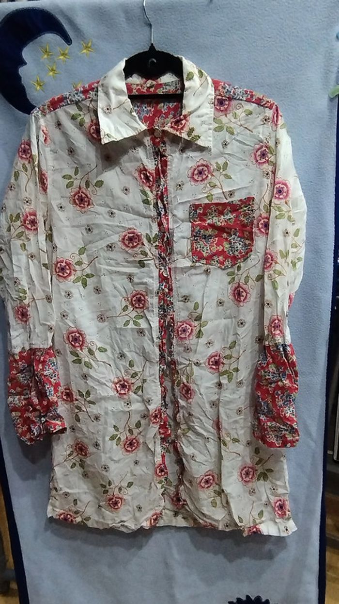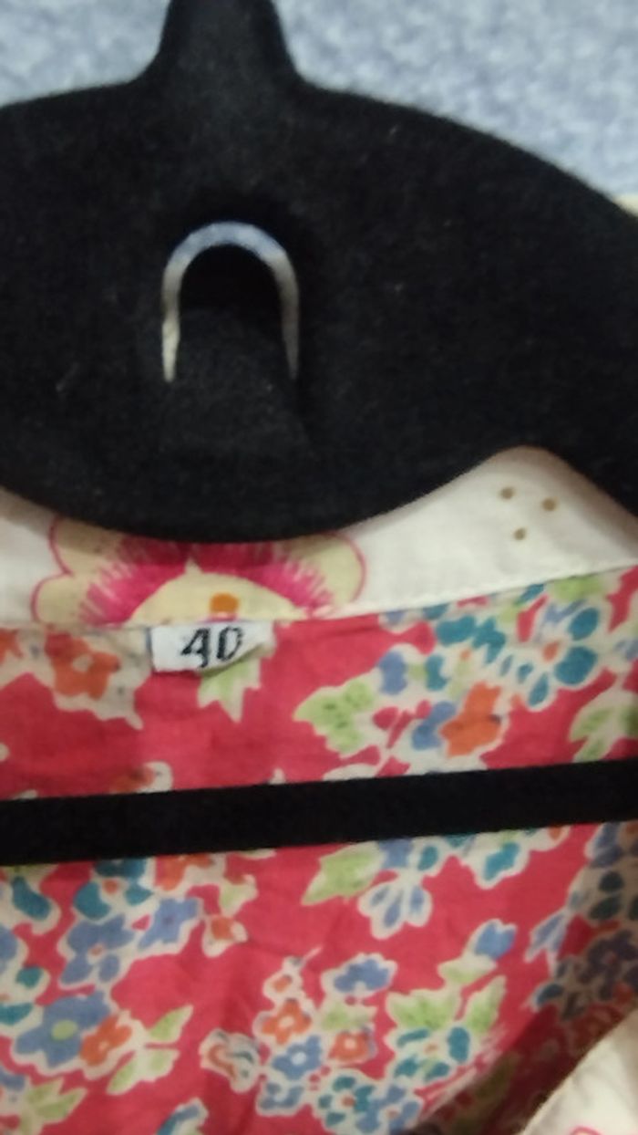 Tunique fleurie avec le poche bicolore en parfait état taille 40 (Froisser) car elle sort d'un sac à vêtement