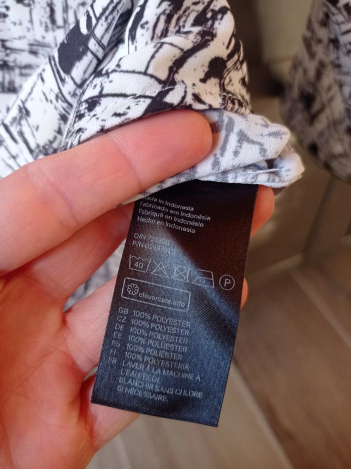Blouse femme noire et blanche. De la marque « H&M ». Taille 34. Bon état. Composition : 100% polyester N'hésitez pas à regrouper vos achats pour optimiser les frais de ports. #vetementfemme34mykonoa A6.