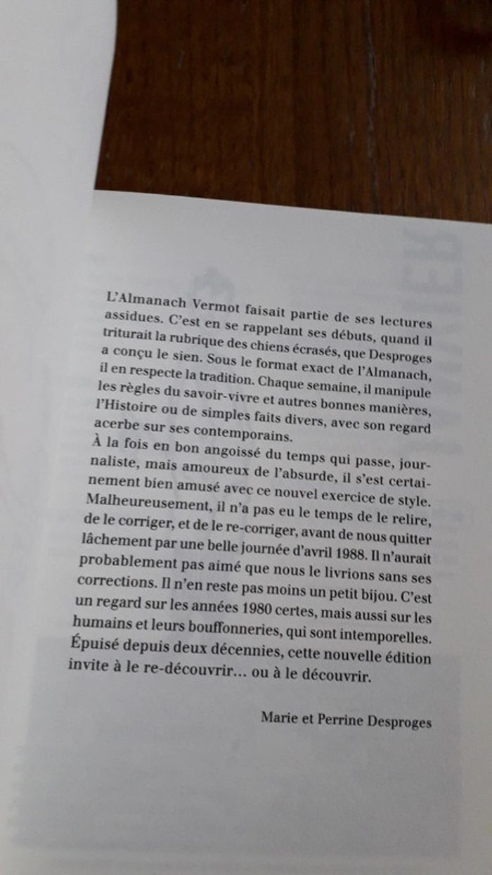 l'Almanach de Pierre Desproges, paru un mois après sa mort.
