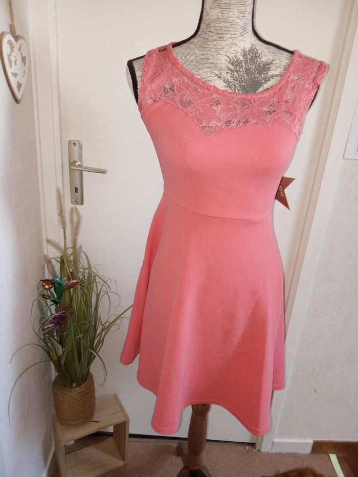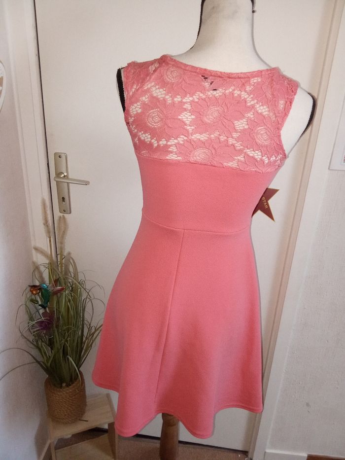 Robe débardeur mi saison, été cérémonie rose, dentelle, col rond, taille 36 ou S - photo numéro 3