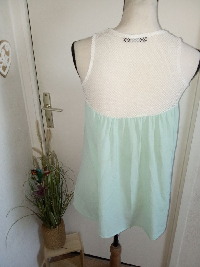 Blouse, Tunique debardeur femme été, mi saison, vert eau, blanc taille 38 ou M - photo numéro 3