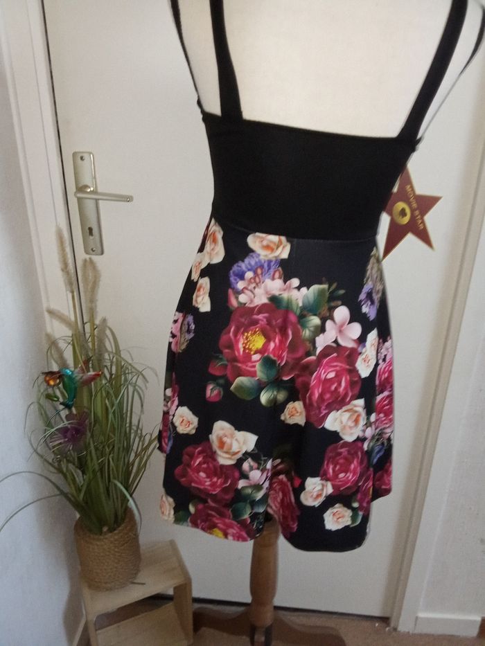 Robe bustier, style pin up, mi saison, été, débardeur, taille 36,38, S ou M, noir, motif fleuri - photo numéro 1