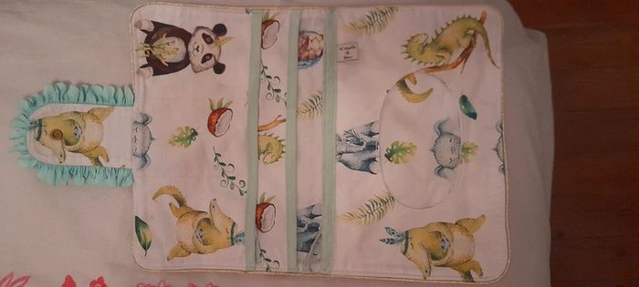 Pochette pour emporter facilement couches lingettes et crème partout, se glisse facilement dans un sac ou autre. Un accessoire très pratique, thème jungle. Réalisé par une créatrice L'aiguille de sha Réduction intéressante en lot #accessoiresbabyestlé