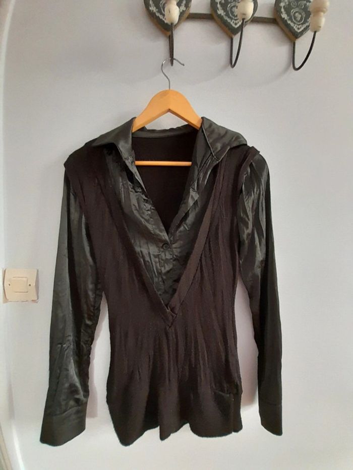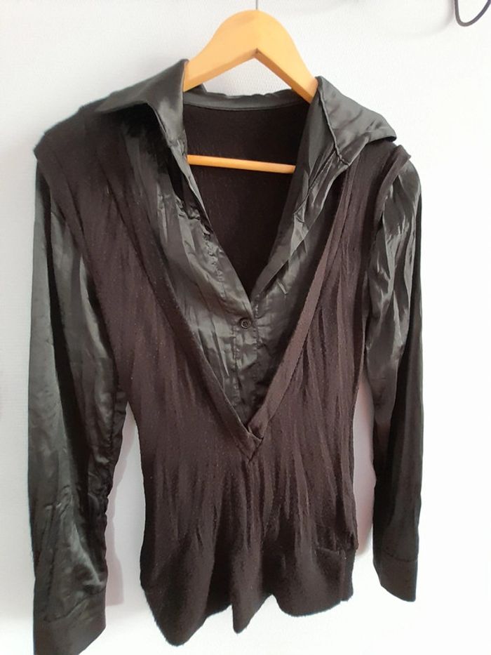 Taille unique satinée noire bi matière Avec col en très bon état peu portée Réduction intéressante en lot #estléfemme