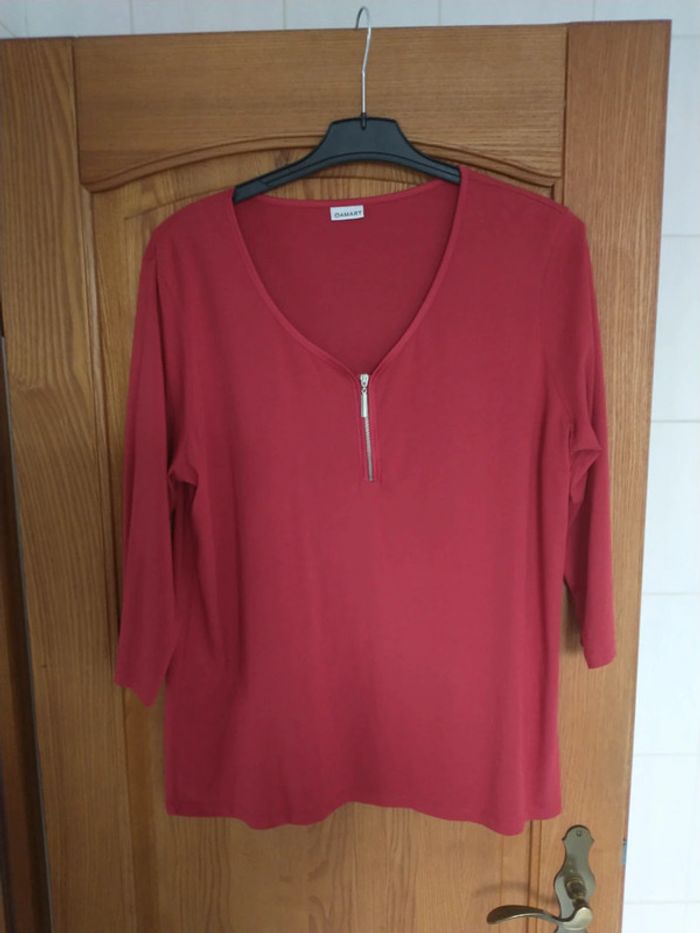 T-shirt rouge Damart manches 3/4 taille 46 48 ou L - photo numéro 1