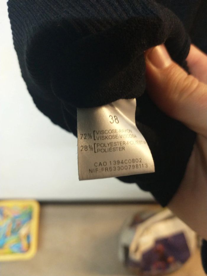 Pull noir col v taille 38 composition 72 % viscose 28 % polyester