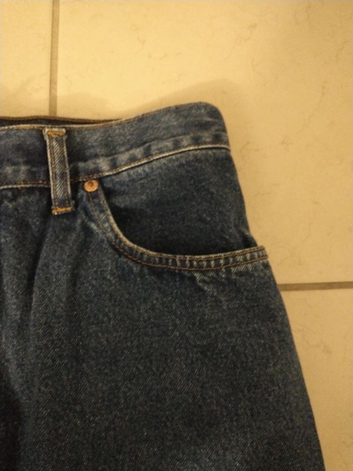 Jeans bleu neuf taille 46 sans étiquette il a juste été lavé mais jamais porté car Erreur de taille à la commande les frais de retour étaient trop chers. Composition 100 % coton.